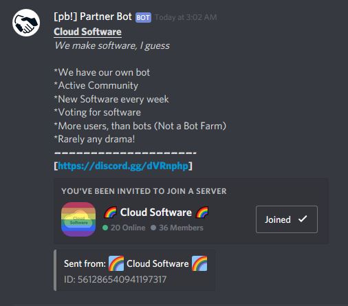 Cloud Software's discord has Partner Bot since it's beginning.